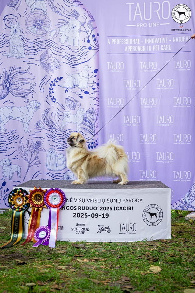 Tiibetinspanieleissa pääsimme juhlimaan vasta kaksi vuotiasta Tashi-Gong Romaa, joka sai lisätä komeaan tittelirivistöönsä nyt myös arvokkaan Suomen Muotovalion tittelin! Valioitumiseen oikeuttavan sertifikaatin ”Vennin” emännälle Nina Isomäelle ojensi päivän suomalainen tuomari Tapio Kakko.