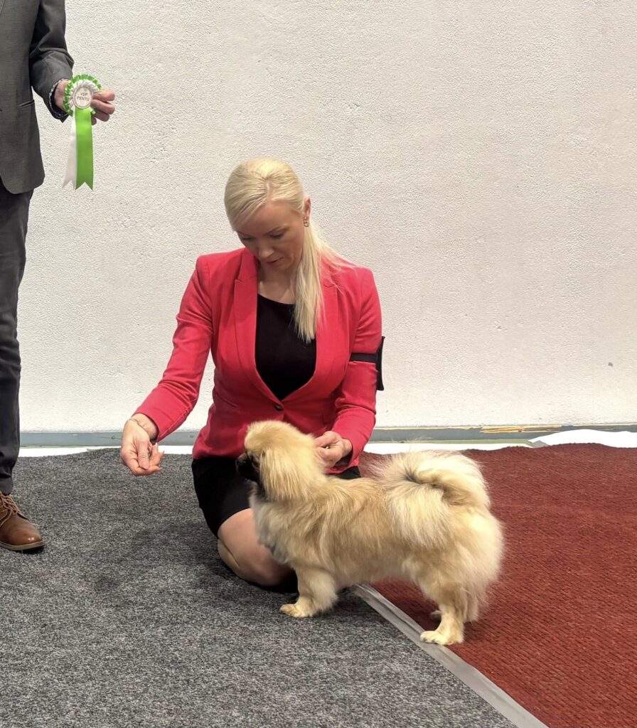 ”Dolly”- oma neitimme Tashi-Gong Afrodite esiintyi ensikertaa Suomen pentukehissä, jälleen reippaasti ja iloisesti Liisan kanssa. Tuloksena 1, KP ja VSP-pentu. Tuomarina Tarmo Wallin, FI