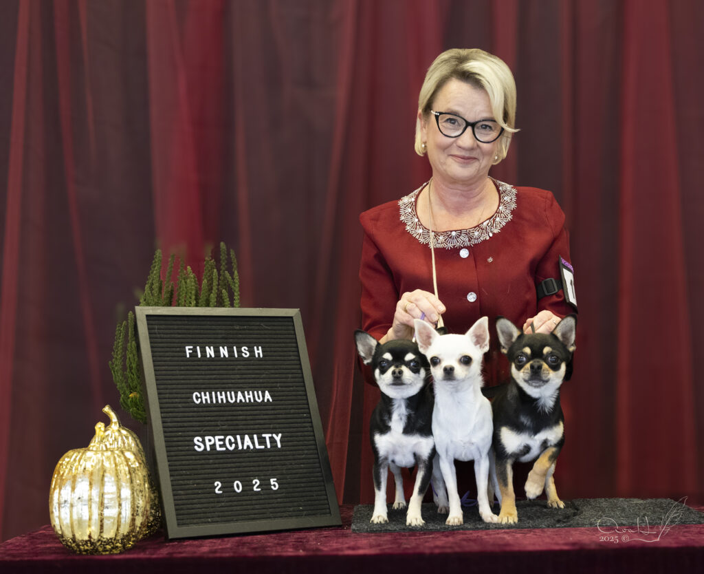 Meidän chihutiimi oli tänä vuonna tällainen! Siinä vasemmalta oikealle ”Ivanka, Evelia ja Zorro” ja kaikki esiintyivät ja menestyivät aivan upeasti.